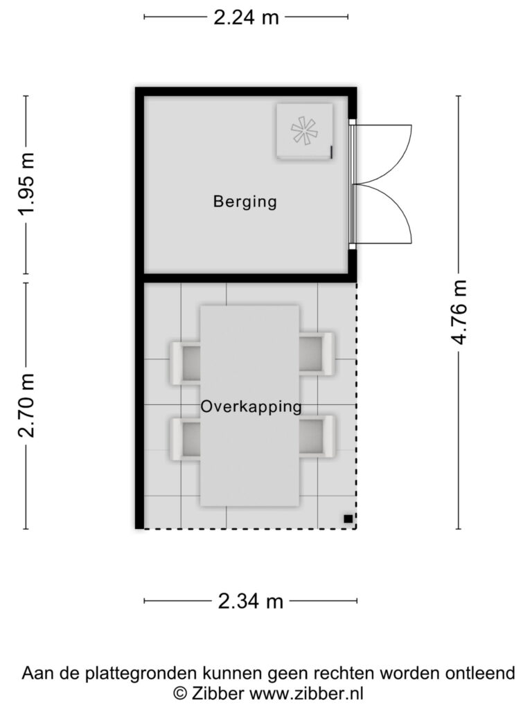 – Externe bergruimte (tuinhuis): 4,4 m²