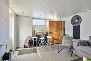 De voormalige garage is verbouwd tot extra woonruimte en kan uitstekend worden gebruikt als slaapkamer, werkruimte of hobbykamer. Hierdoor is de woning ook geschikt voor levensloopbestendig wonen.