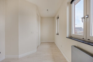 Overloop met toegang tot 2 slaapkamers (derde mogelijk) en de badkamer. De badkamer is modern afgewerkt en voorzien van een dubbele wastafel, toilet en ruime inloopdouche. Ook hier is vloerverwarming aanwezig. Beide slaapkamers zijn voorzien van airconditioning.