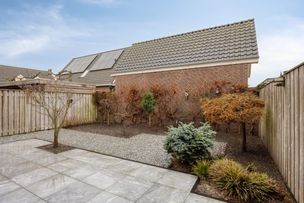 De woning beschikt over een verzorgde tuin waar u heerlijk kunt ontspannen. Dankzij de geschakelde bouw geniet u hier van een prettige combinatie van privacy en openheid. Een fijne plek om te genieten van het buitenleven.