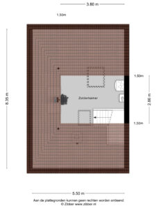 Via vaste trap bereikbare zolderverdieping. Een praktische ruimte die geschikt is als berging, werkruimte of hobbyruimte.