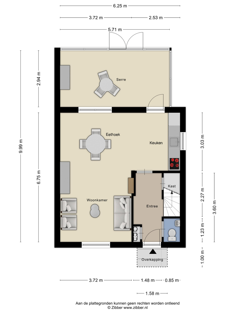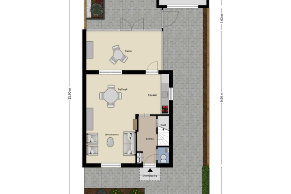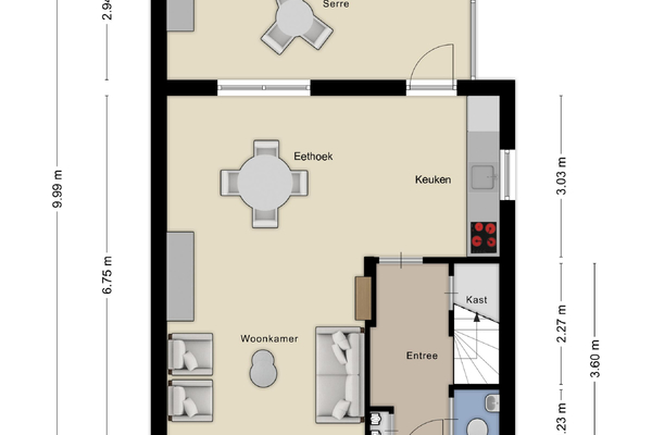 Begane grond: Via de hal met toilet, meterkast en trapopgang kom je in de lichte en sfeervolle woonkamer. Deze is royaal opgezet en staat in open verbinding met de keuken. De keuken is netjes uitgevoerd en voorzien van een afzuigkap, een nieuwe inductiekookplaat en een nieuwe koelkast. Vanuit de keuken is er toegang tot de serre, welke volledig is afgesloten en verwarmd en zorgt voor extra leefruimte en licht.