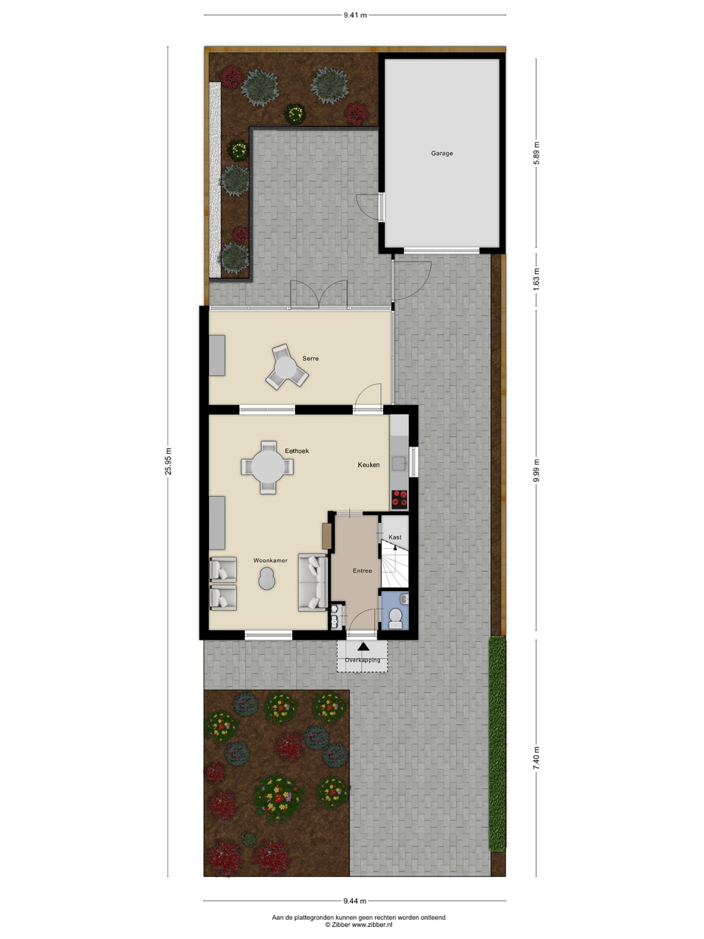Buitenruimte: De woning beschikt over een grote garage, een eigen oprit en een netjes aangelegde tuin met terras en borders. Een fijne, rustige buitenruimte met voldoende privacy.