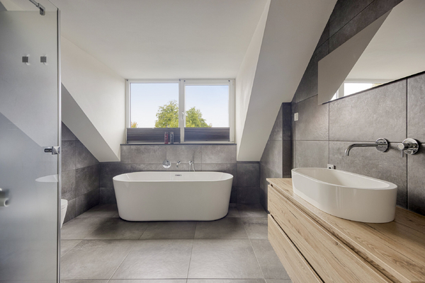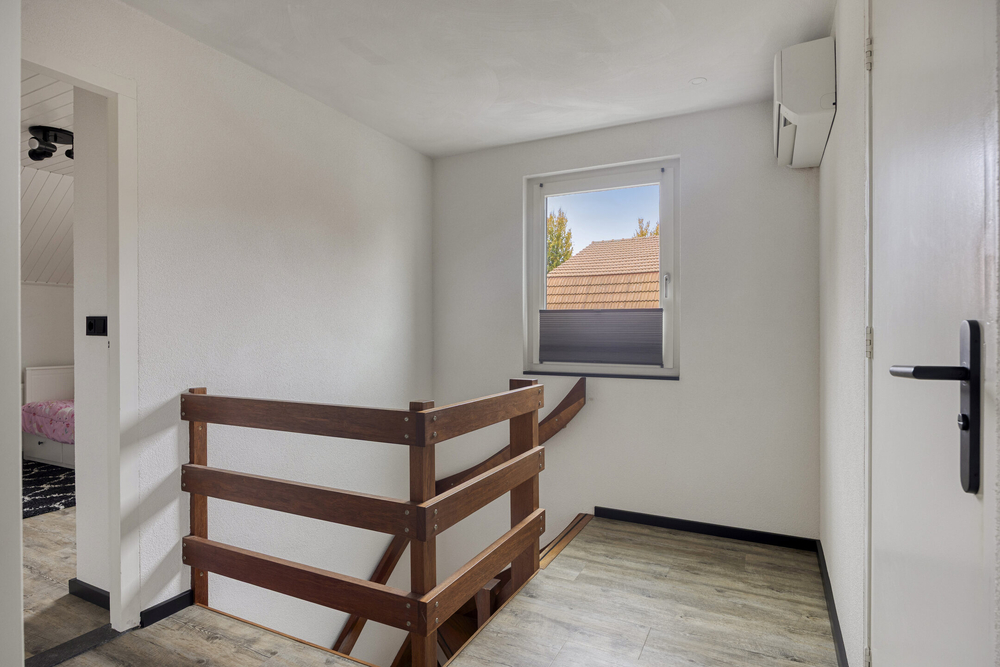Eerste verdieping: Overloop met toegang tot 3 slaapkamers. Airco op de overloop en 1 van de slaapkamers. Badkamer met luxe afwerking voorzien van inloopdouche, vrijstaand ligbad,wastafel en toilet.