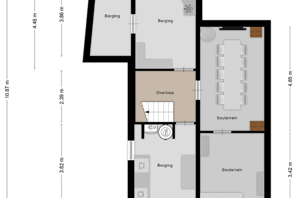 Souterrain: Volledig onderkelderd met diverse praktische ruimtes, geschikt voor opslag, hobby of extra werkplek.