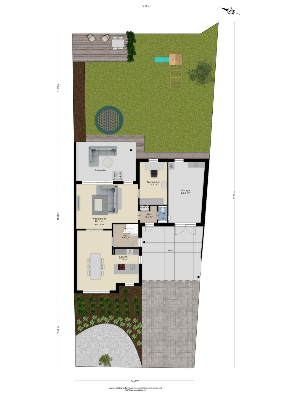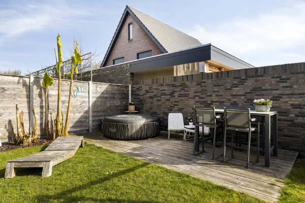 De tuin is netjes aangelegd en biedt meerdere zitmogelijkheden. Dankzij de overkapping kun je hier het hele jaar door comfortabel buiten zitten. Tevens is er een royale garage met dubbele deuren voorzien van isolatie en verwarming en keukenblok. De carport en inrit aan de voorzijde bieden ruimte voor meerdere auto’s op eigen terrein.