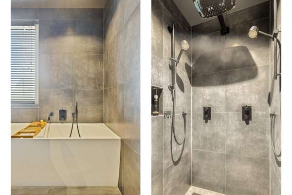 Overloop met toegang tot drie slaapkamers en een badkamer voorzien van inloopdouche, wastafel en toilet. De hoofdslaapkamer beschikt over een eigen badkamer ensuite voorzien van ligbad, dubbele douche, dubbele wastafel en toilet.