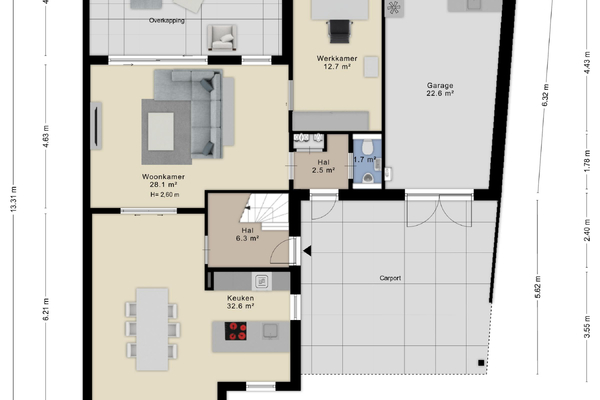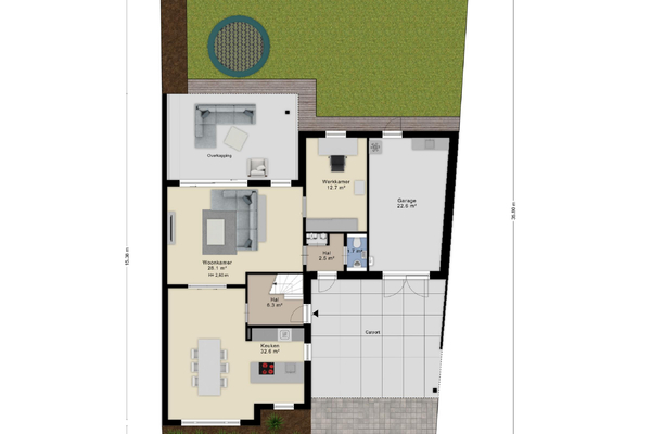 - Garage en royale inrit met carport voor meerdere auto’s