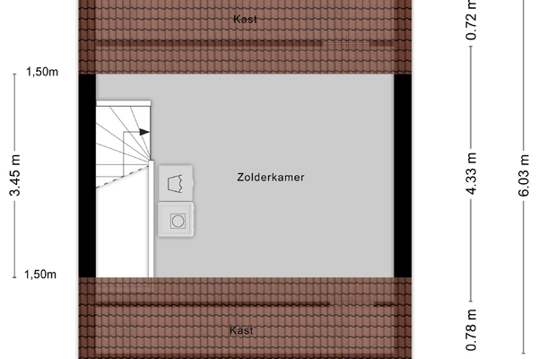 - Overige inpandige ruimte (zolderverdieping): 17,5 m²