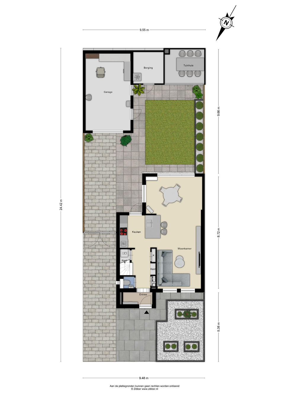 - Onderhoudsvriendelijke tuin met houten overkapping en berging