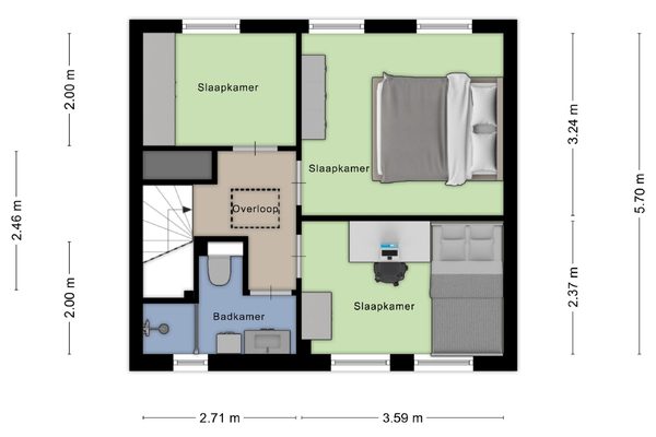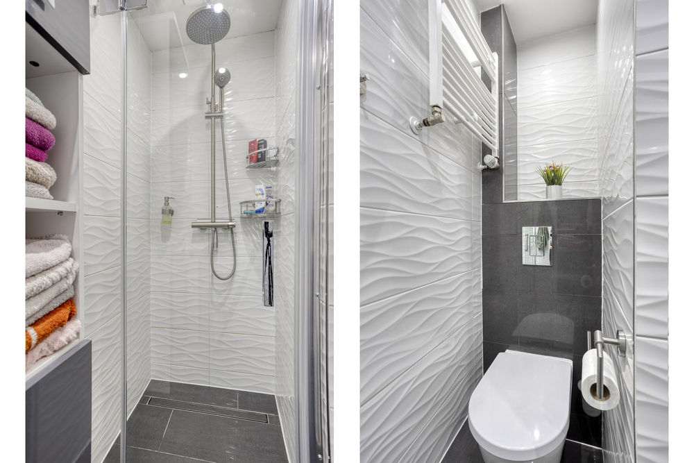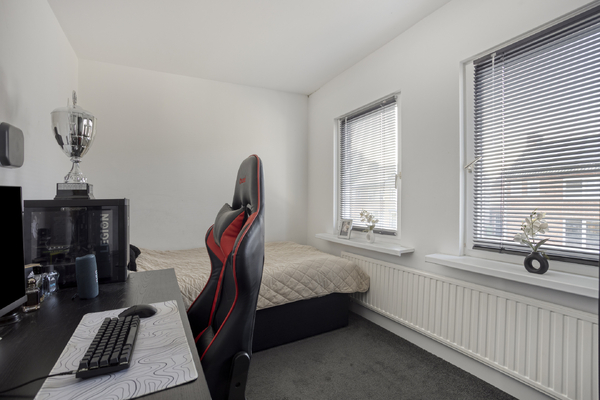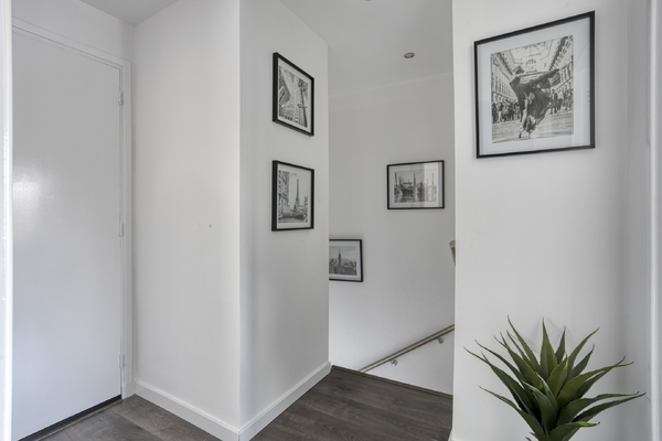 De overloop geeft toegang tot drie slaapkamers en de badkamer. De badkamer is in 2021/2022 volledig vernieuwd en modern uitgevoerd met een inloopdouche, toilet, wastafel en elektrische vloerverwarming.