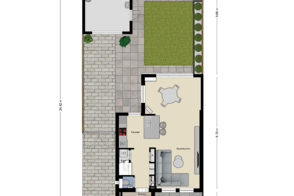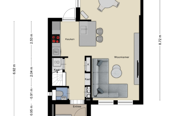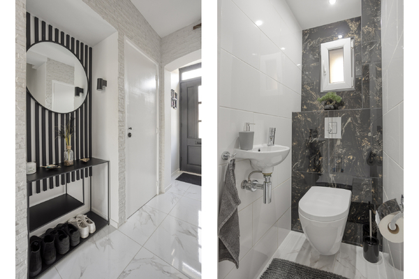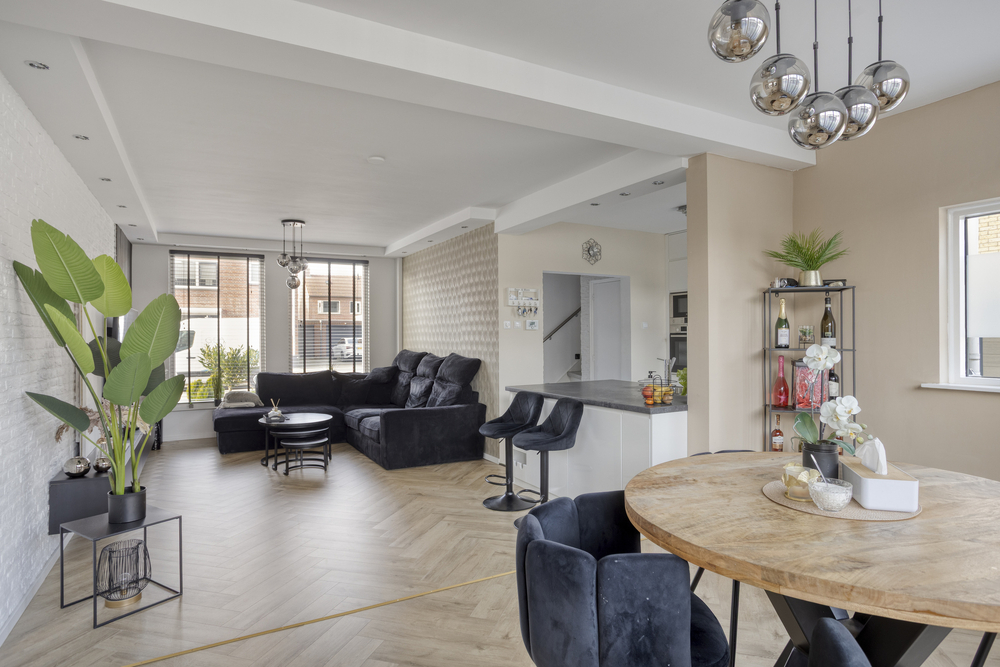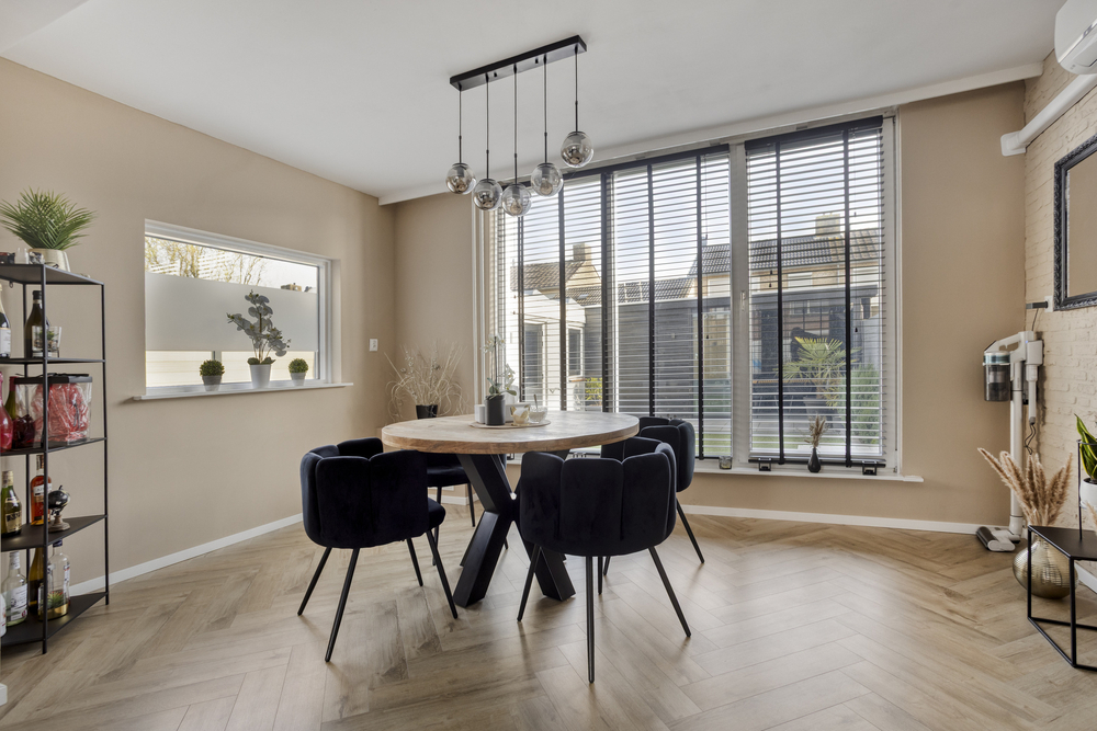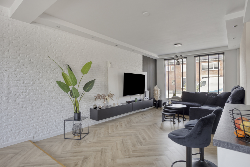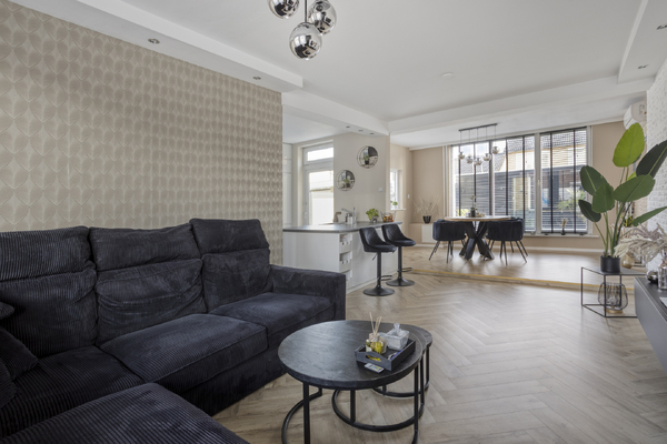 Via de entree bereik je de hal met trapopgang, vernieuwde meterkast (2019) en modern toilet (2023). Vanuit de hal kom je in de woonkamer, een prettige en lichte leefruimte met voldoende plaats voor een zit- en eethoek.