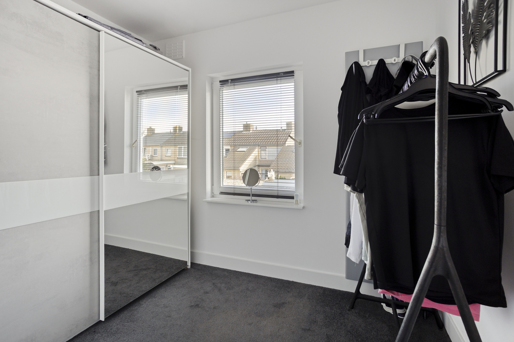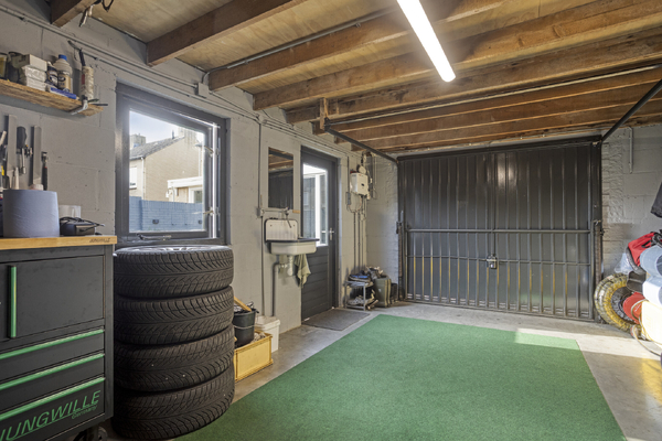 De woning beschikt over een eigen oprit en een vrijstaande stenen garage, ideaal voor opslag, hobby of het stallen van een auto.