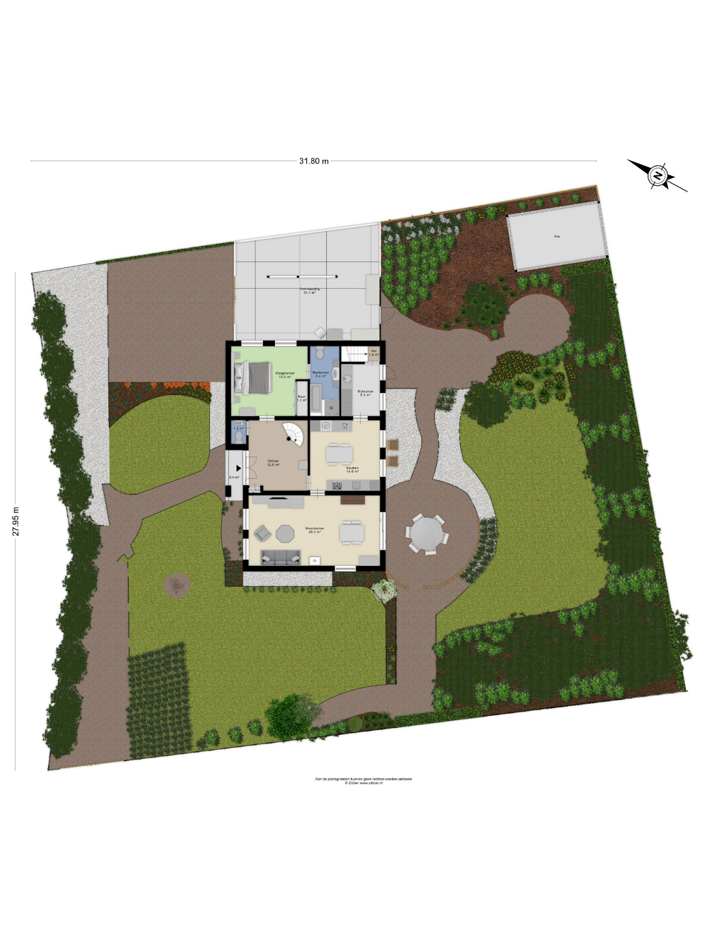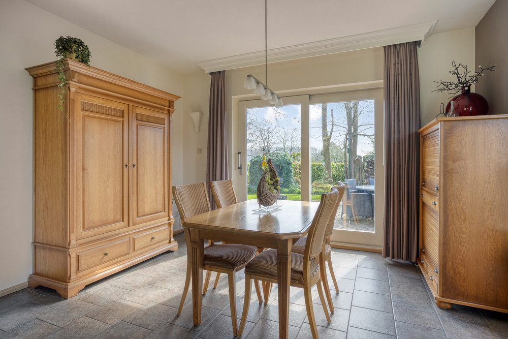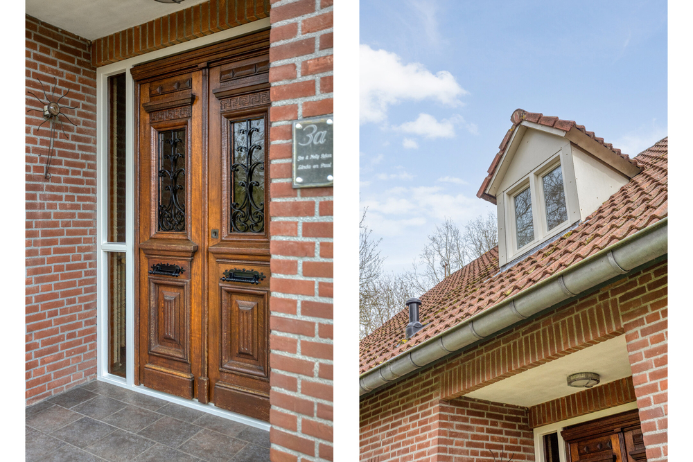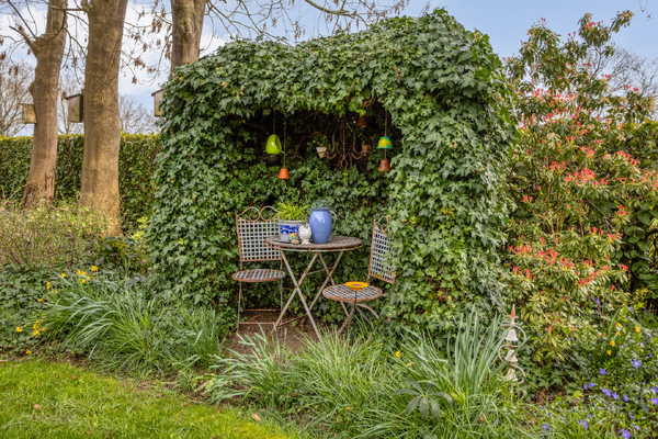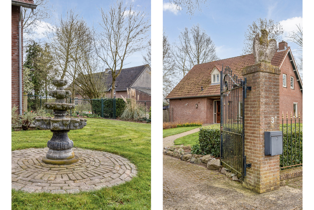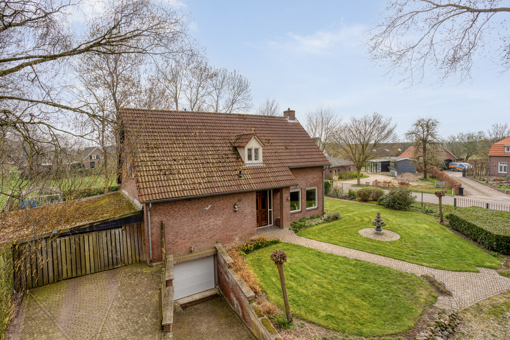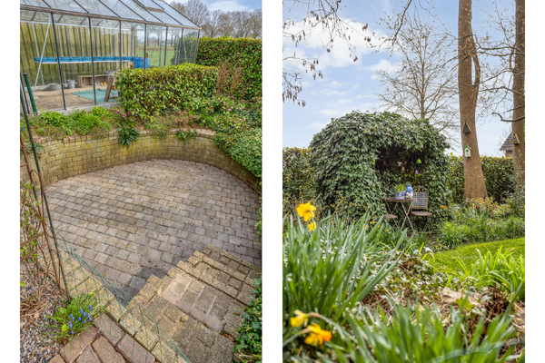 De fraai aangelegde tuin rondom de woning biedt volop privacy en diverse zitplekken. Er zijn meerdere terrassen aanwezig, een kas en een sproei-installatie met grondwaterpomp. Daarnaast beschikt de woning over een carport en extra bergruimte naast de woning. Vanuit de tuin geniet je van een prachtig vrij uitzicht over de omliggende weilanden.